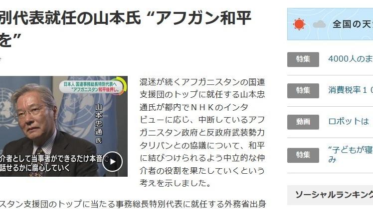 Mr. Yamamoto was recently designated as the future SRSG for Afghanistan, and is scheduled to assume office when the current SRSG, Nicholas Haysom, completes his term in office at the end of June.