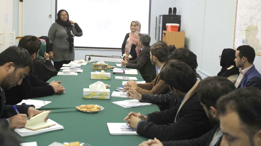 Around 40 students from Kahkashan-e-Sharq University participated in a two-hour presentation delivered by UNAMA staff including Khalil Osman, the head of the UNAMA Office in Herat, along with team leaders, including from Human Rights, Political Affairs, Governance and Rule of Law.