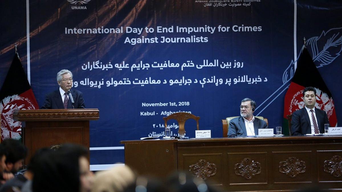 Attacks and crimes against journalists and media workers in Afghanistan are at intolerable levels said UNAMA’s head envoy, Tadamichi Yamamoto. “Some of the crimes are of the most egregious nature; the deliberate targeted murder of reporters in acts of terrorism,“ said Yamamoto, the Secretary-General’s Special Representative for Afghanistan. “The perpetrators of crimes should not believe they are above or beyond the law,” he said, adding that the culture of impunity must be challenged.