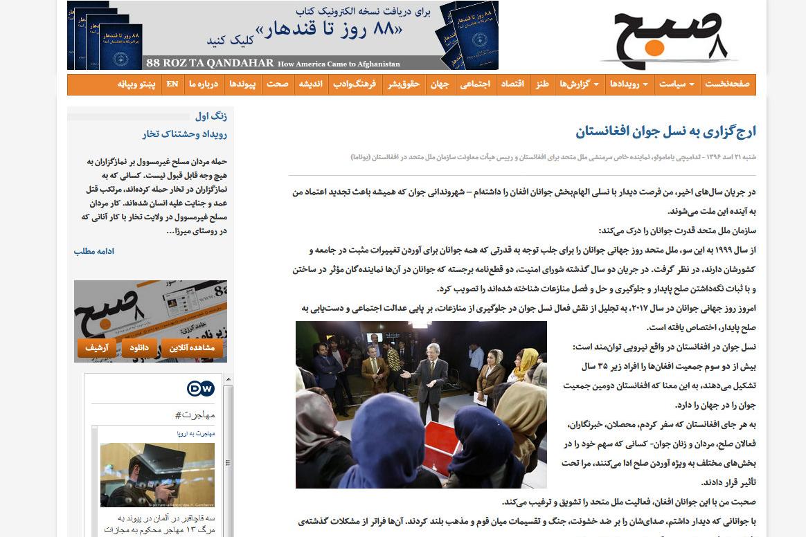 The following article, by Tadamichi Yamamoto, the UN Secretary-General’s Special Representative for Afghanistan, appeared in today’s edition of the leading independent daily, Hasht-e-Subh (8 a.m.), on the occasion of…