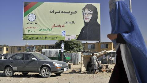 Unable to rely on the media to provide information to her voters, Tarana has, instead, spent over US$ 20,000 on a panoply of posters and banners, that emblazon the lampposts of Kabul's main streets, often fighting for every inch of available space in this walled city, at times overlapping life-size pictures of presidential candidates, at others, pasted shoulder-to-shoulder with her male provincial council rivals.