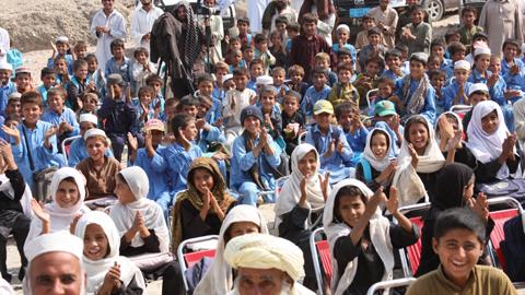 The occasion of the school inauguration was also seized to spread the message on children’s rights. Members of the Kabul-based Parwaz Theatre, contracted by UNICEF, entertained the children through their puppet shows on five themes of child rights – identity, protection, participation, education, health and hygiene.