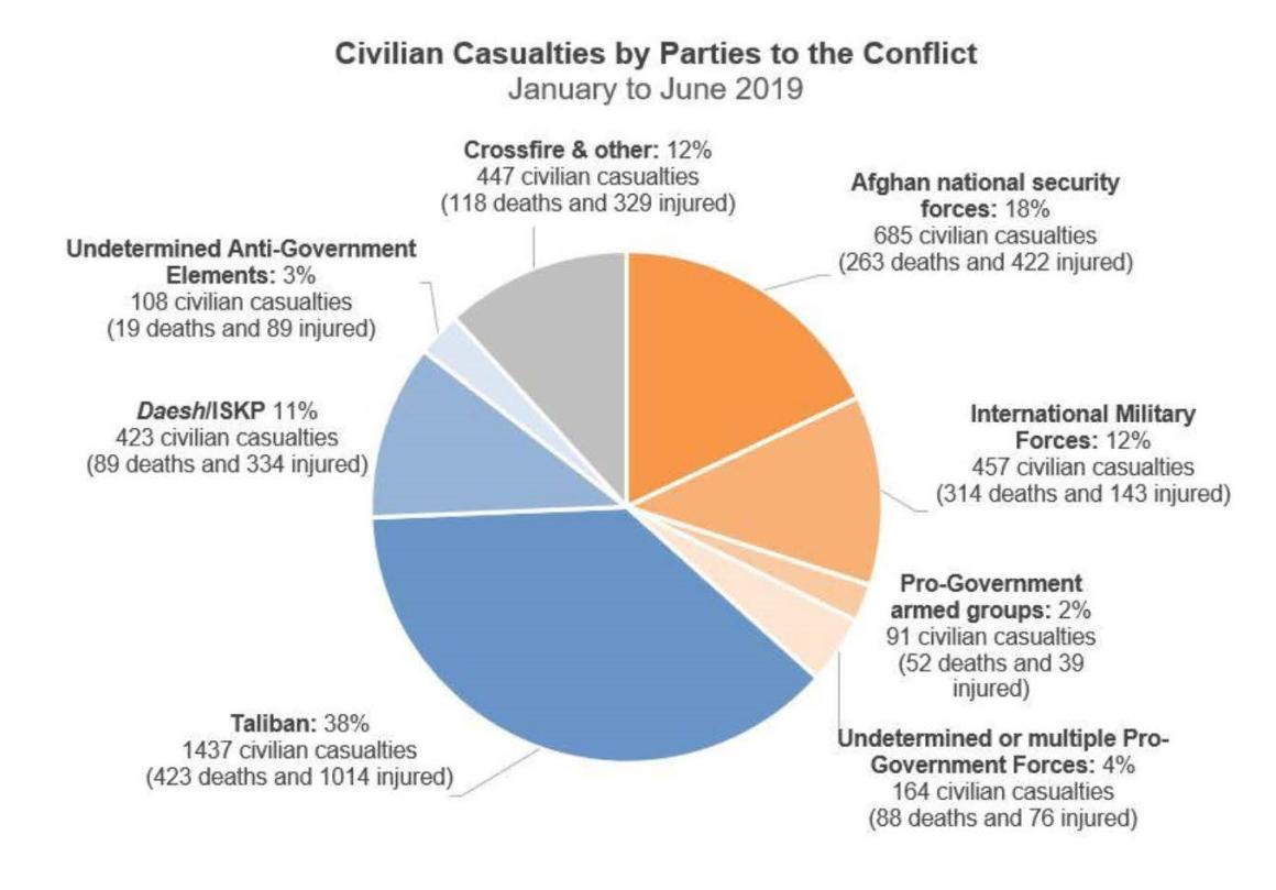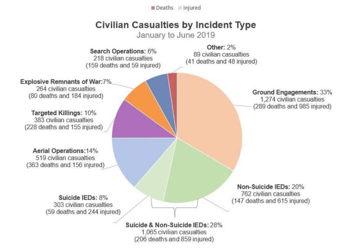 KABUL - The conflict in Afghanistan continues to have a devastating impact on civilians, with the latest UN update released today documenting 3,812 civilian casualties (1,366 deaths and 2,446 injured) in the first half of 2019.