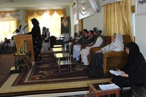 28 June 2010 - Sahadat Karimi walks to the stage, past the sofas where officials are seated, and retrieves a large colorful parcel from the hands of Herat’s director of the Department of Women Affairs (DWA). She pauses…