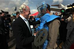 3 April 2010 - Dozens of deminers wearing crisp blue uniforms and face-protecting helmets lined up to greet the Special Representative of the UN Secretary-General for Afghanistan, Staffan de Mistura, ambassadors and donors…