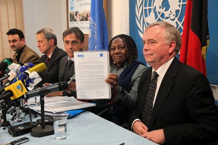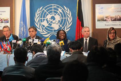 22 November 2009 - UNICEF's Country Representative in Afghanistan Catherine Mbengue, addresses the media in Kabul on the launch of the State of the World's Children report.