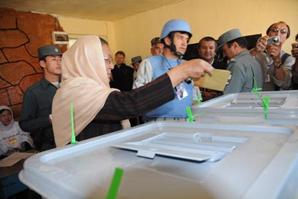 20 August 2009 - 07:50am: At Bamyan’s Sayed Abad Girl’s High School Governor Habiba Sarabi was the first to vote at a women’s polling station. She said that as a citizen she came to vote, it was her right and responsibility…