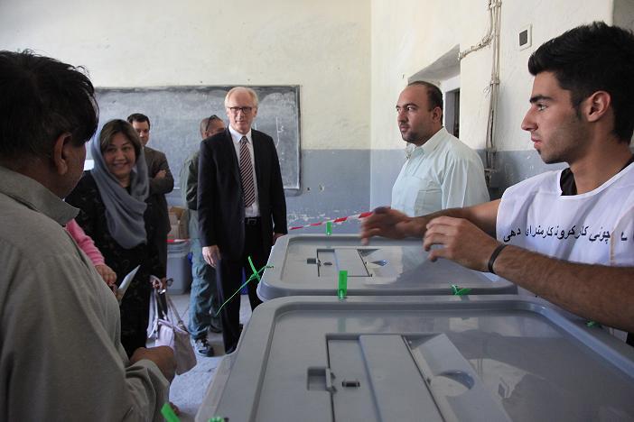 20 August 2009 - 12:05 am: The UN’s top envoy in Afghanistan has just visited a polling station in Kabul. Kai Eide encouraged voters at the Zarghona High School. Check all the latest photos from today here