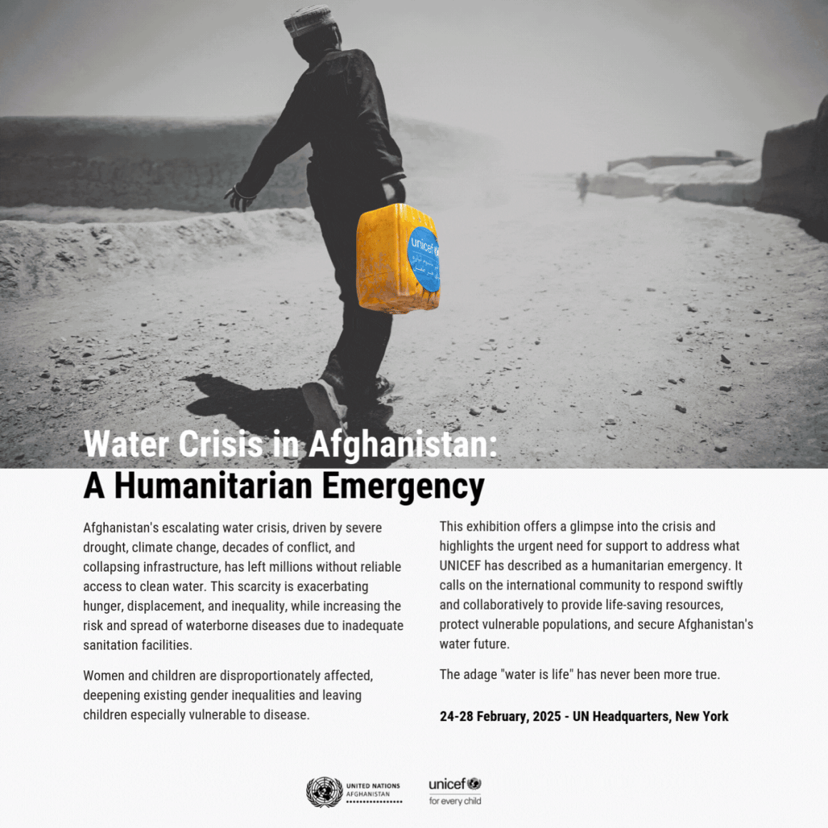 The five-day exhibition, running from 24 to 28 February, highlights Afghanistan's escalating water crisis, driven by severe drought, climate change, decades of conflict, and collapsing infrastructure.