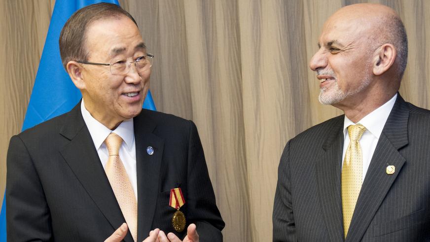 President Ashraf Ghani presented Mr. Ban with the State Order of Ghazi Amir Amanullah Khan, yesterday in Brussels. The medal is bestowed by the Afghan Government to Afghan nationals and non-Afghans in appreciation of their services.