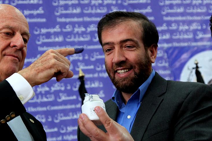 KABUL - Dr F A Manawi, Chief of the Independent Election Commission (IEC) and UN special envoy Staffan de Mistura held a press conference at the IEC headquarters in Kabul today, where they tested the indelible ink to be used…