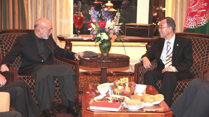 According to Martin Nesirky, the spokesperson of the Secretary-General, the UN chief reiterated the UN support to the next presidential elections during his meeting with the Afghan leader in the sidelines of the NATO Summit in Chicago yesterday.