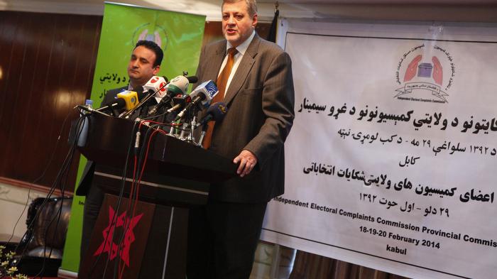 In his remarks, the UN Envoy said he was encouraged by IEC and IECC Chairmen's common message that while respecting each other's mandate and independency, IEC and IECC will work hand in hand to deliver elections.