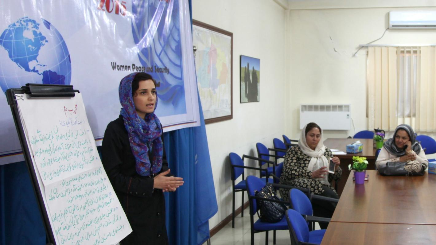 UNAMA is mandated to support Afghan institutions and civil society groups to enhance women’s meaningful contributions in Afghanistan’s political and security transitions, including in the peacebuilding agenda.